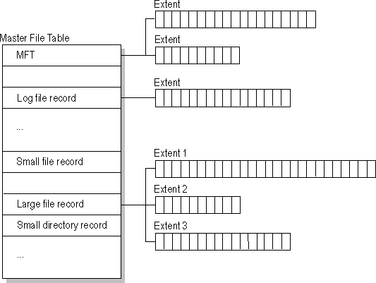 This design makes file access very fast. Consider, for example, the FAT file system, which uses a file allocation table to list the names and addresses of each file. FAT directory entries contain an index into the file allocation table. When you want to view a file, FAT first reads the file allocation table and assures that it exists. Then FAT retrieves the file by searching the chain of allocation units assigned to the file. With NTFS, as soon as you look up the file, it's there for you to use.