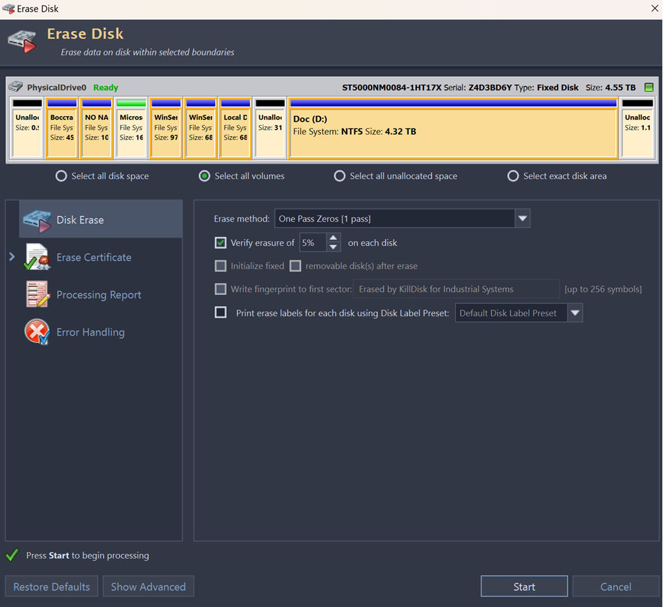 - This is a default disk area option and applies to entire disk surface to be erased;